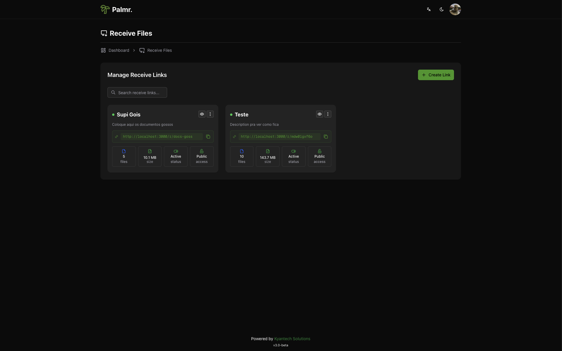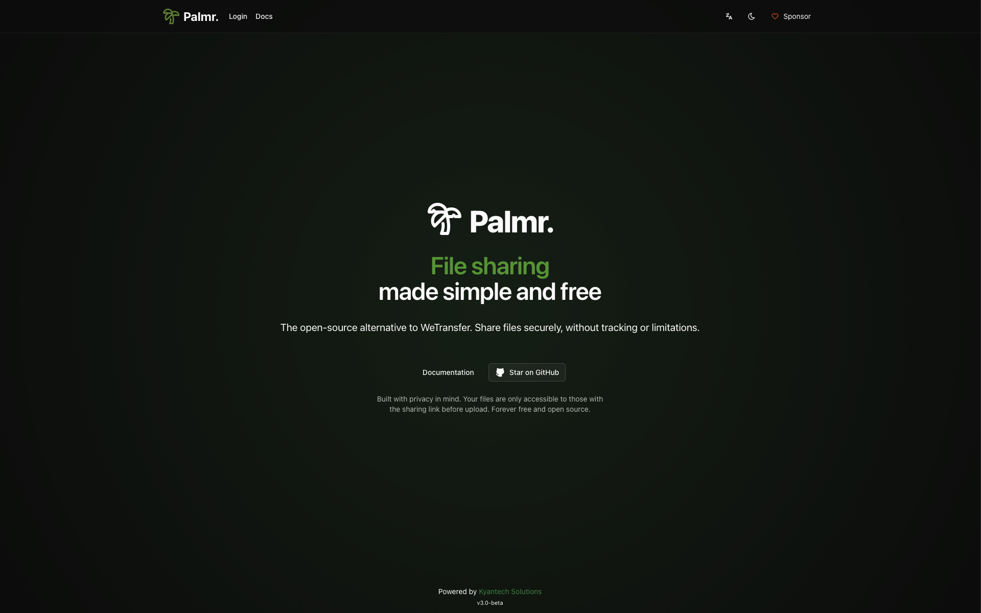 🌴 Palmr. is an open-source file-sharing platform focused on privacy and security. It enables users to upload, manage, and share files with features like password protection, custom links, and access control without tracking or limitations. Designed for seamless and secure sharing, Palmr. is completely free.